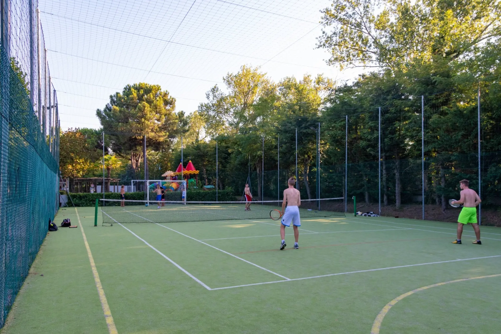 Minors may access the playground and the multipurpose field only if accompanied by adults. In any case, the management accepts no responsibility for any damage that minors may incur and/or that they may cause to third parties.