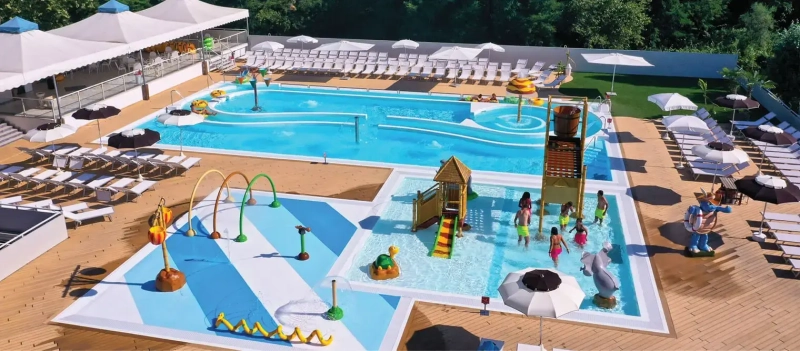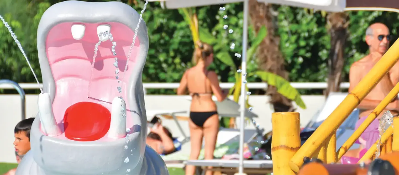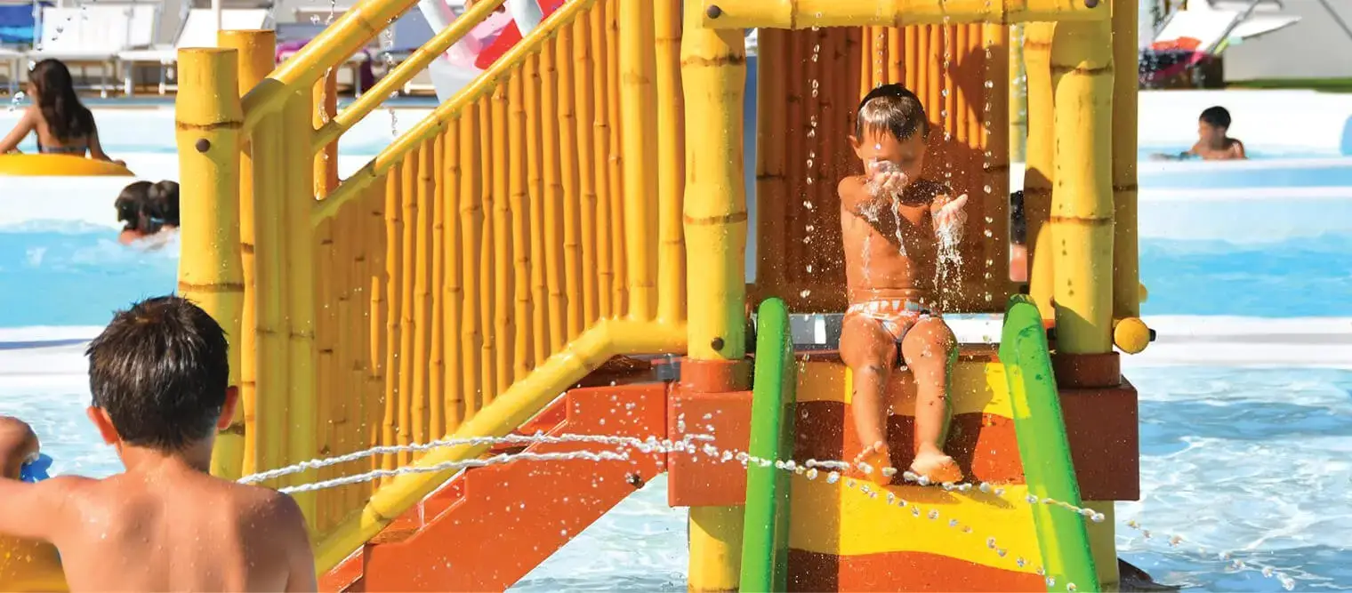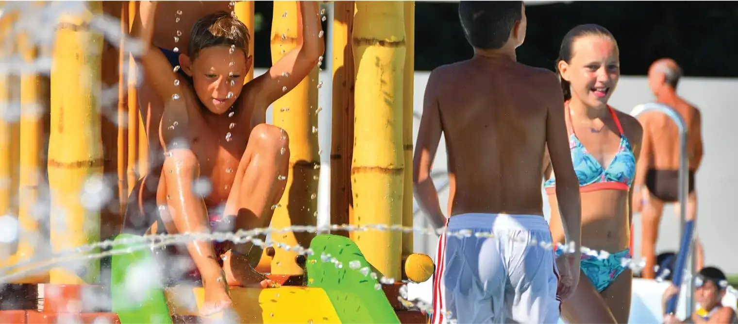 • The use of swimsuits in the pool is mandatory for all children; in the case of small children, the use of a restraining swim diaper is mandatory.