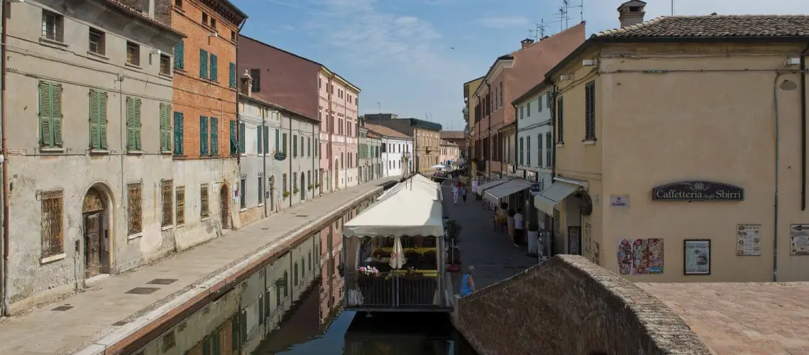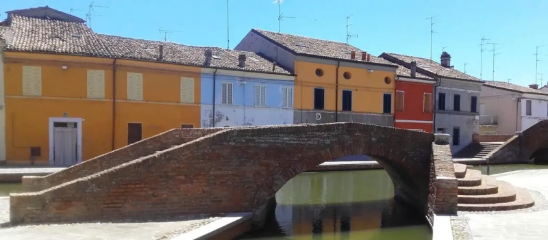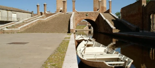 Comacchio is a town situated in Emilia Romagna, a region in the North of Italy. It is located on the Adriatic coast in the province of Ferrara, at about 30 km from Ravenna in the south and 120 km from Venice and 250 km from Lake Garda in the north.