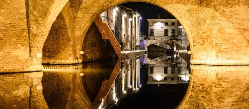Comacchio is one of the biggest centers in the Po Delta. Heir to ancient Spina, it has very old origins, was built in the Middle Ages on thirteen islands and founded exclusively on its urban and economic development. Fishing and salt production were the source of its prosperity.