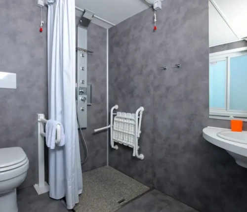 Modern and comfortable accomodation.The spacious rooms are also suitable for disabled persons. Outside terrace with covered table and chairs, garden. Room with double bed and bathroom, room with 2 single beds and 1 loft bed. Bathroom with wc, shower and wash basin. SAT TV. Living room with kitchenette furnished with stove, refrigerator, microwave oven and kitchenwares.