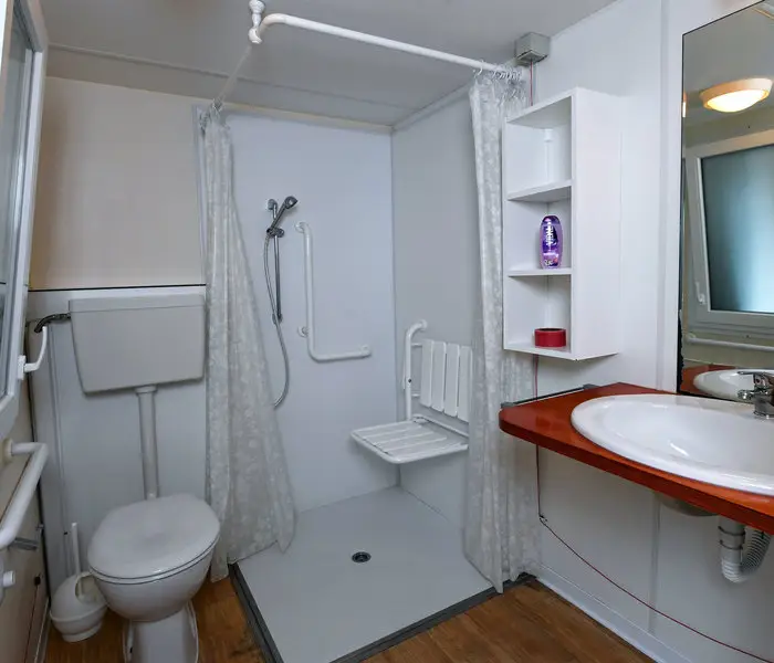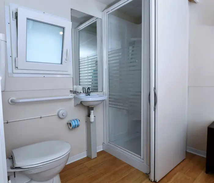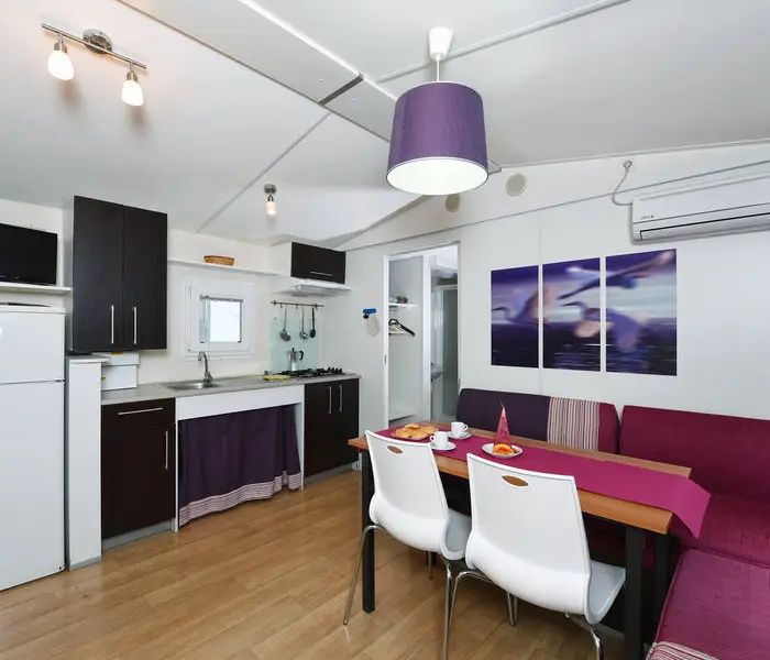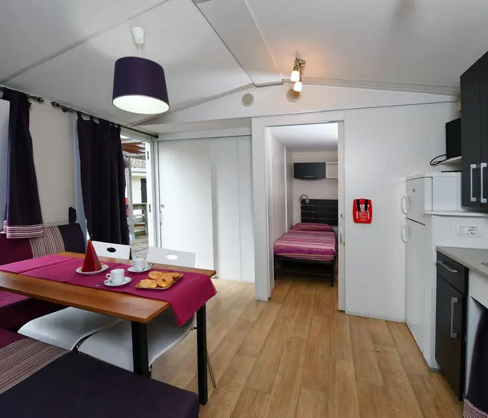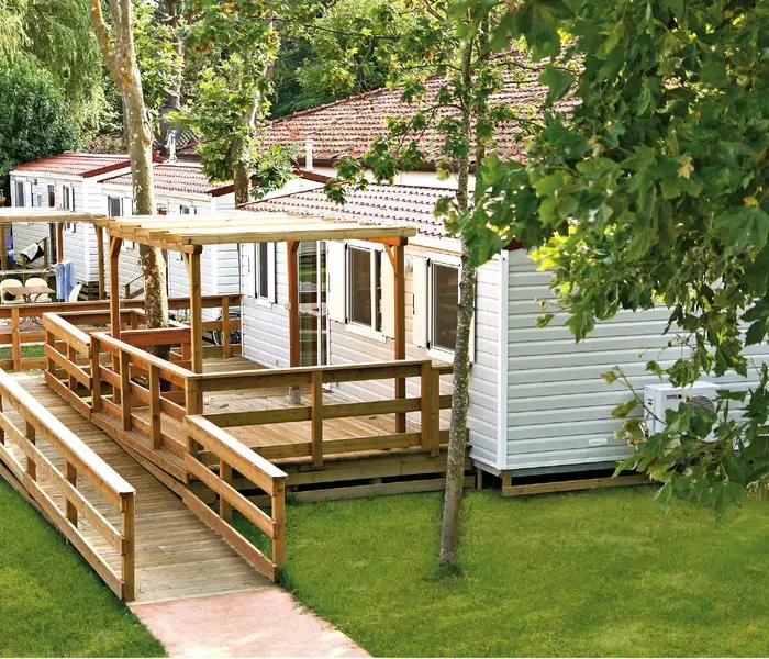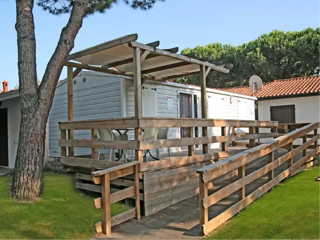 Indipendent mobile homes close to all the services: supermarket, solarium swimming-pool, children playground. The spacious rooms are also suitable for disabled persons. Outside a big terrace (20 sqm), furnished with covered table and chairs. A ramp makes it easily accessible to wheelchairs.